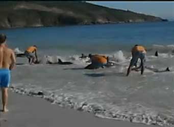 Um grupo de, aproximadamente, 30 golfinhos encalhou numa praia em Arraial do Cabo, na Região dos Lagos do Rio, na segunda-feira (05 de marco de 2012). Um grupo de moradores e banhistas que estavam no local conseguiu salvar todos os animais.